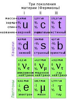 Все фундаментальные фермионы группируют в три поколения. К частицам первого поколения относят самые тяжёлые, к частицам третьего – самые лёгкие.
